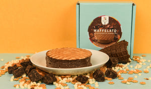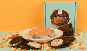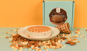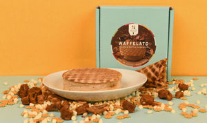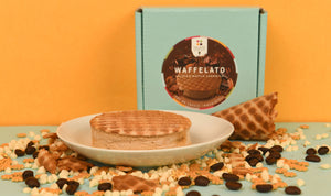 The Veluto Waffelato is a signature crispy waffle coated with sauce and toppings, that hold together a slice of our freshly churned gelato. We have designed each sandwich to give you a bit of everything, so every bite of a waffelato gives you soft, rich gelato on your tongue, paired perfectly with a crisp crunch of waffles and nuts. It’s a perfect serving for one, or you can get five waffelatos, for a fun discount.